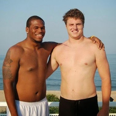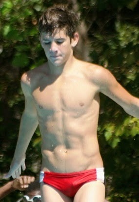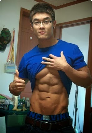 A. is too long, with too many characters, and gives me some internalized homophobia. B. is shorter, and doesn't involve bragging: notice that I didn't display my physique.