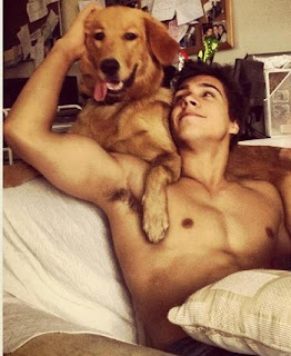 In the middle of the night I got up to go to the bathroom, and passed Travis's bedroom. The door was wide open. Travis lay in bed. He had kicked off the covers -- I could see a bare backside illuminated in pale light from the nightstand. The dogs, curled up on the floor, looked up expectantly.