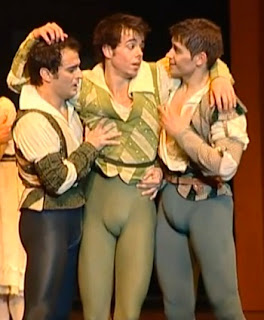 Ballet and Opera Bulges. (Second photo.) Admit it -- you go to the ballet primarily for the bulgeworthy tights. Here's a trio of buddy-bonding guys with tripods beneath the belt.