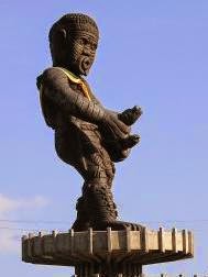 This monument in Georgetown depicts Kuffy, the leader of a slave revolt in 1763. He's not doing what you think.