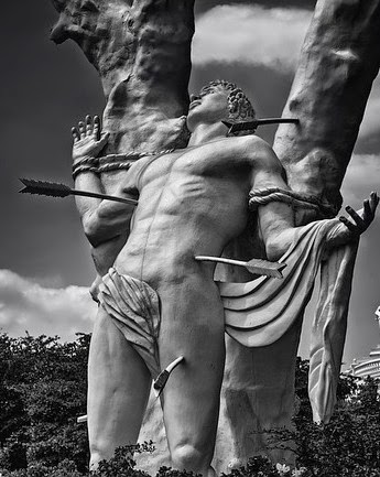 1. If you work your way down from the public penises of the Caribbean, the first country you hit is Venezuela, In Maracaibo, a buffed Saint Sebastian is falling out of his clothes as he's pierced by arrows beside a concrete tree.