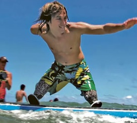 Plus her boyfriend, played by Cameron Clapp, a triple-amputee athlete and motivational speaker (seen here surfing).