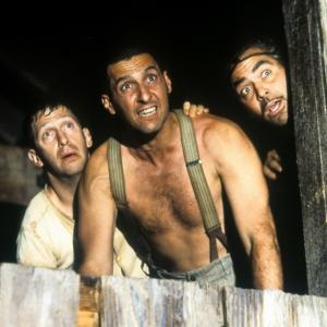 It's set in a surreal, sepia-toned 1930s Mississippi, where the fast-talking con-man Everett (George Clooney) and his dimwitted companions, Pete (John Turturro) and Delmar (Tim Blake Nelson), escape from a convict chain-gang and dash across the countryside, trying to get to some loot that Everett said he buried. But he actually is conning them: there is no "buried treasure." He just wants to reunite with his estranged wife and numerous daughters.