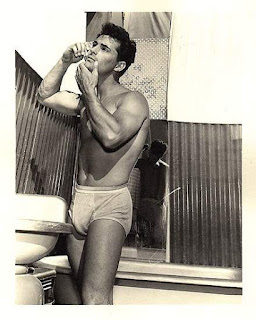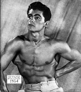 During World War II, Forrester Dorlac moved from Missouri to Los Angeles with his parents. He went out for gymnastics, and used to work out on Muscle Beach in Santa Monica with the other bodybuilders. A lot of gay men used to come down to watch -- Forrester was straight, but he loved the attention -- and one day in 1946, Bob Mizner invited the 16-year old to his mother's house in downtown Los Angeles for a photo shoot. It was fun to put on a skimpy posing strap, and recreate the poses of a classical Greek statue. And it was gratifying to realize that guys found him attractive.Forrester returned again and again for 15 photo shoots during the next 14 years, using the stage name Forrester Millard. Bob sold the photos by mail order through his company, the Athletic Model Guild, and, beginning in 1951, Physique Pictorial, the first magazine aimed at a gay male audience (although it claimed to be for fitness enthusiasts).