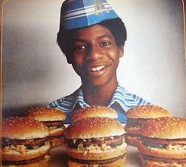 5. We didn't have Jack in the Box, either, so we never saw the ads starring the tiny tot Rodney Allen Rippy (top photo, with bodybuilders Ric Drasin and Don Peters demonstrating his size). His commercials had him trying to get his hands around a Jumbo Jack, and complaining, "It's too big to eat." Let the dirty jokes begin.