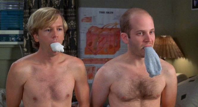 By the way, Todd Louiso has an impressive physique. Andy Comeau doesn't show anything here, but you can see his penis on tv series Huff (2004).