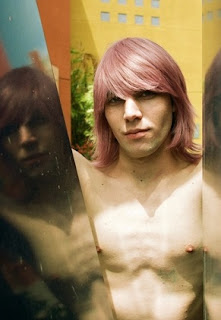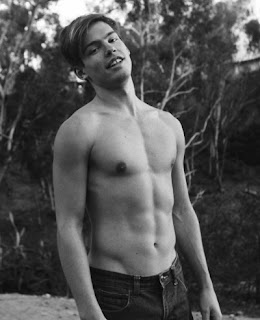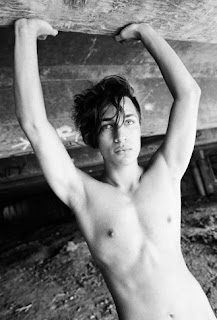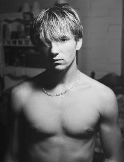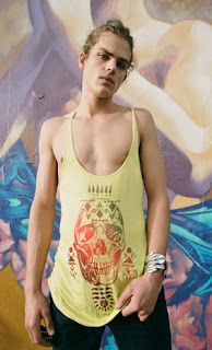 Reed is a more recent model, just 18, a skateboarder in vintage hip-huggers.