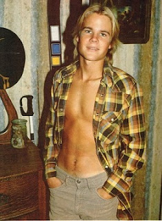 Blond goldenboy Jeb Stuart Adam looked like he sprang up from the Appalachia of the Dukes of Hazzard, but he was actually the son of gay actor Nick Adams and his wife, Carol Nugent, and he grew up among the Hollywood glitterati. His angelic smile and a smooth, firm but not muscular chest, making him perfect for roles as threatened kids: threatened by drug dealers on Quincy ME (1982), a bad father in His Mistress (1984), and a hippie cult on Airwolf (1985).