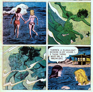 By 1973, when David's star was in decline, apparently stories about meeting fans or trying to seduce the one girl in the world who wasn't into him weren't selling well, so the plots moved toward action-adventure, with David meeting spies and pirates. This says "Outlaws, groovy chicks, and a fiddle bit keep David busy."
