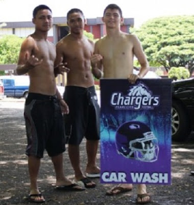 A lot of the car wash fundraisers feature women instead of men, so you have to be careful. Is it a male team or club? Is it being advertised by men? Especially men who wrap the signs around their waists, implying that they are naked.