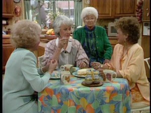 The recurring scene where the Girls sit around their kitchen table, eating cheesecake and schmoozing.