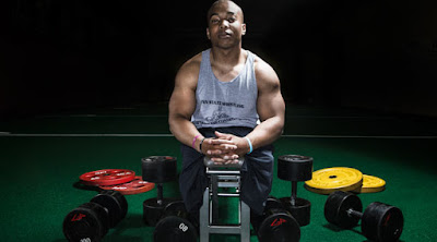 Ibrahin Al-Hussein, a Syrian refugee. Buffed physique.