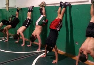 But no beefcake pictures of Moriarty athletes. Here's the closest I could get: the backs of skinny guys doing wall push-ups.