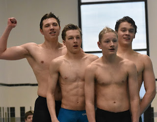 Weird meanderings in the world of internet physique photos:1. I was searching for "Napoli nuoto" when this photo of "some of the veteran members of the Medina swim team," in an article dated November 2017.