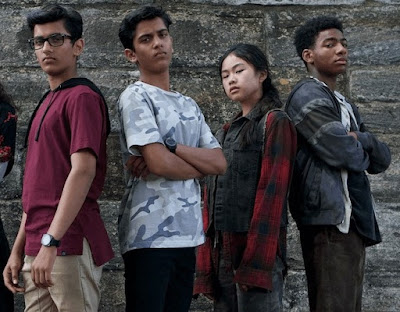 And four refugees who knew too much and are now on the run: three girls and Jacob (Nya Cofie, right), although Gemma (Jean Hinchliffe) is so androgynous that I thought the character was meant to be nonbinary.
