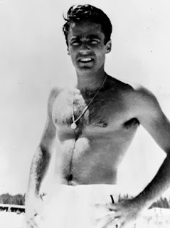 2. Peter Lawford, 37 year old former child actor, later a tv star (he was on The Doris Day Show). Everyone thought he was gay; Louis B. Mayer went as far as to order testosterone injections as a "cure." Got married to Pat Kennedy, the future President's sister, over the objections of her father -- he didn't want his daughter married to a gay guy. Reputedly had relationships with Tarzan Gordon Scott, Rock Hudson, and Merv Griffith.