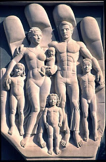 This was the cover photo of a book on constitutional law. A sculpture of family of muscular naked people about to be squished by a scary giant hand.