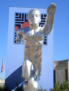 Lawrence Tenney Stevens (1896-1972) was one of the progenitors of the "Cowboy High Style" movement. He grew up in Massachusett, lived in Europe, and finally settled in Santa Barbara, California and Cody, Wyoming. He specialized in "big" sculptures, entrances to buildings and so on. Some naked women, but muscular men, too.