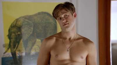 Beefcake: Nonstop! Three of the influencers (Charles Melton, Nico Greetham, above, and Dyllon Burnside, left) are half-naked all the time, and the fourth (Kevin McHale) is shown briefly in the hot tub. Plus there are some hunks at the boys' Christmas party. Grade: 10.