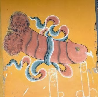 The erect penis is a common artistic motif, painted onto houses for good luck and to keep away evil spirits.