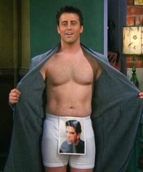 Italian-American stereotype Joey (Matt Leblanc, top photo), a muscular but dimwitted aspiring actor.