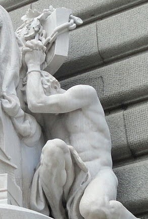 11. Next, head downtown, for the statue of Jurisprudence on the Federal Building. Jurisprudence is a naked woman, but there's a naked, muscular man at her feet, asking for a favor.